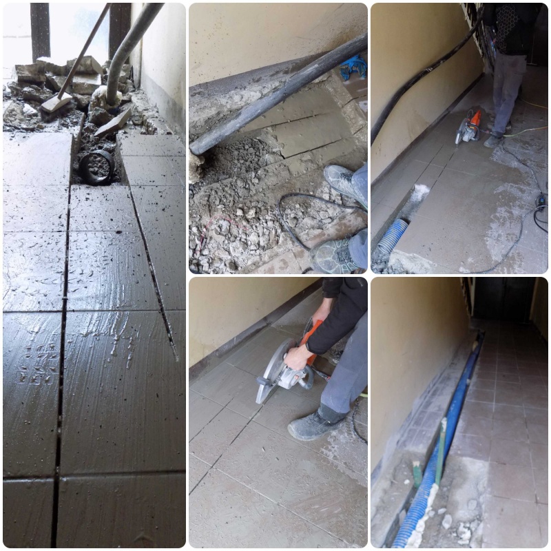 Dla instalacji elektrycznej i kanalizacyjnej, wodnej bruzdujemy ściany i posadzki z użyciem specjalistycznych pił tarczowych ,